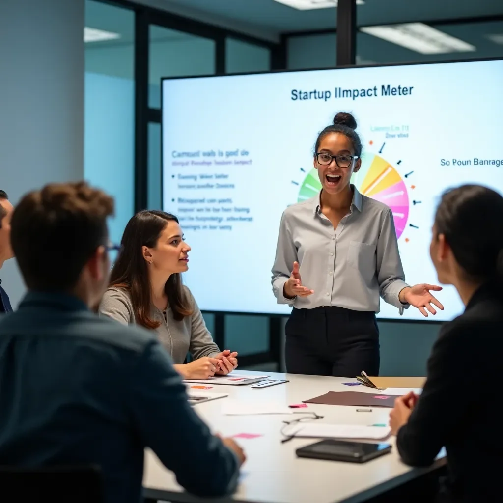 Startup Impact Meter to narzędzie, które mierzy i ocenia wpływ startupów społecznych na ich otoczenie, uwzględniając takie czynniki jak zatrudnienie, wpływ na społeczność oraz zrównoważony rozwój.